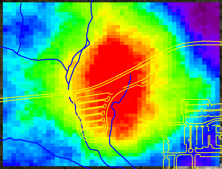 a contour map, evaluated simulations results at each node to determine the probability of exceeding a decision criteria